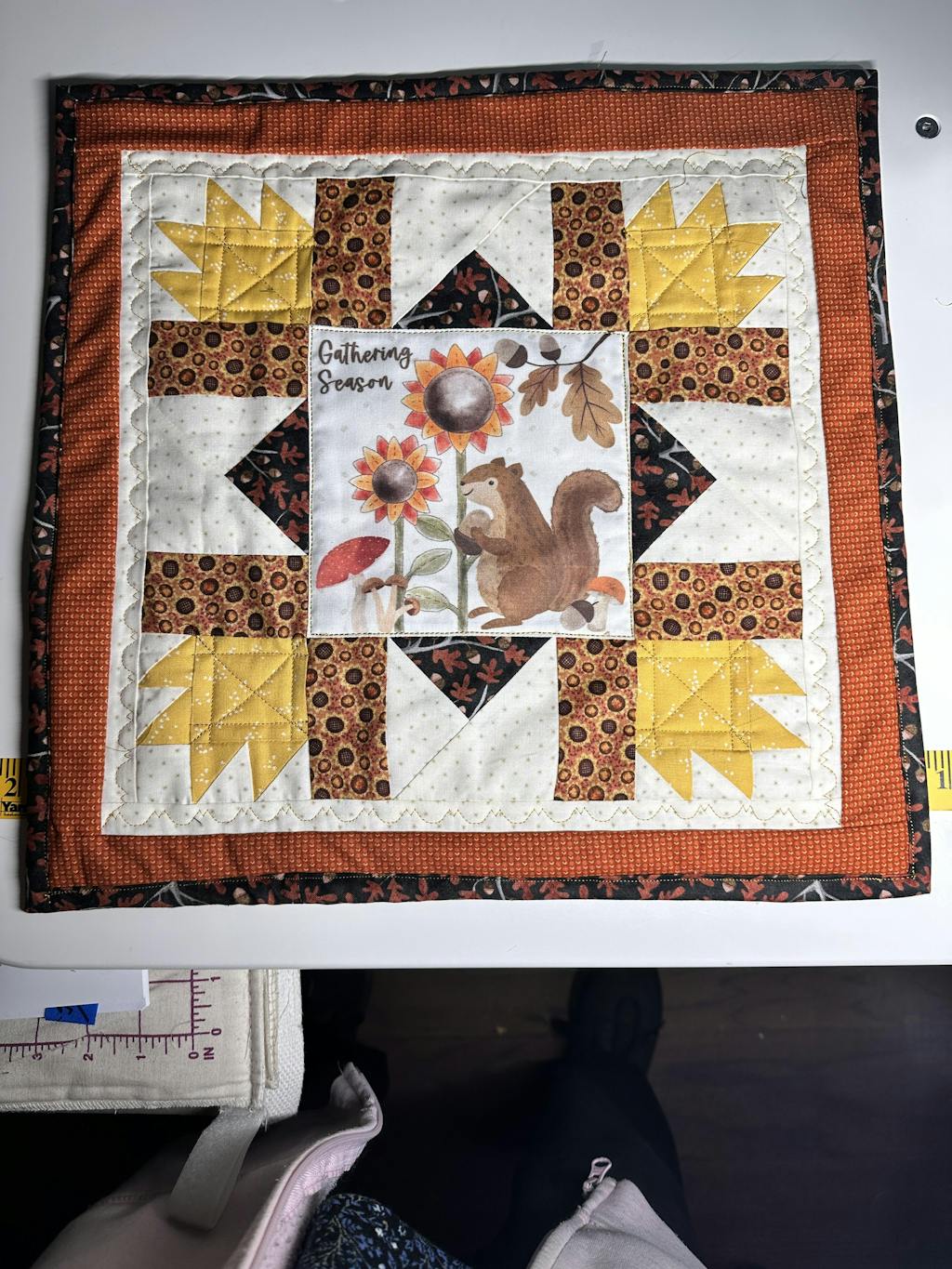 - adorable preprinted Autumn fabric panel for center